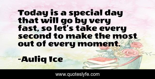 This page presents the quote "Today is a special day that will go by very fast, so let’s take every second to make the most out of every moment.". Author of this quote is Auliq Ice. This quote is about life, moments, positive, motivational, confidence, happy-birthday, optimistic, inspirational, enthusiasm,.