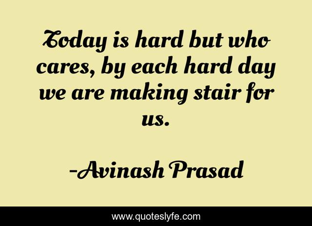 This page presents the quote "Today is hard but who cares, by each hard day we are making stair for us.". Author of this quote is Avinash Prasad. This quote is about hard-day, hard-work, successful-living,.
