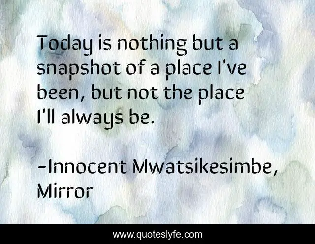 This page presents the quote "Today is nothing but a snapshot of a place I've been, but not the place I'll always be.". Author of this quote is Innocent Mwatsikesimbe, Mirror. This quote is about life, success, situations, motivation, self-improvement, progress, happiness, inspiration,.