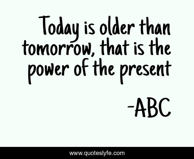 This page presents the quote "Today is older than tomorrow, that is the power of the present". Author of this quote is ABC. This quote is about future, present, today, tomorrow,.