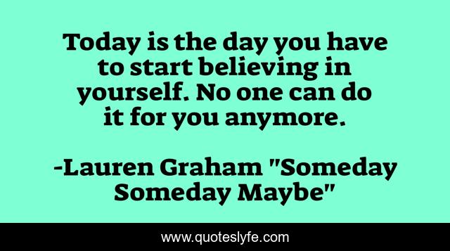 This page presents the quote "Today is the day you have to start believing in yourself. No one can do it for you anymore.". Author of this quote is Lauren Graham "Someday Someday Maybe". This quote is about faith, motivation, self-confidence, inspiration,.