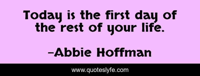 This page presents the quote "Today is the first day of the rest of your life.". Author of this quote is Abbie Hoffman. .