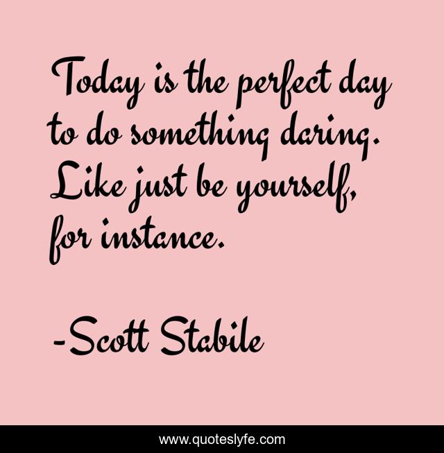 This page presents the quote "Today is the perfect day to do something daring. Like just be yourself, for instance.". Author of this quote is Scott Stabile. This quote is about be-yourself, inspiration, dare, happiness, love-yourself,.
