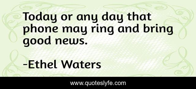 This page presents the quote "Today or any day that phone may ring and bring good news.". Author of this quote is Ethel Waters. This quote is about positive, confidence, day, today,.