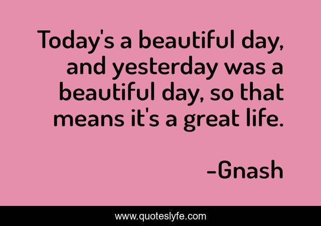 This page presents the quote "Today's a beautiful day, and yesterday was a beautiful day, so that means it's a great life.". Author of this quote is Gnash. This quote is about beautiful, life, today,.