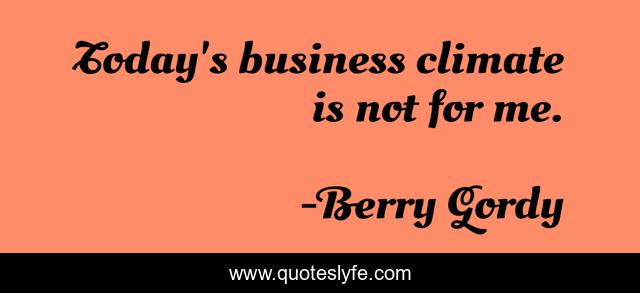 This page presents the quote "Today's business climate is not for me.". Author of this quote is Berry Gordy. This quote is about me, climate, today,.