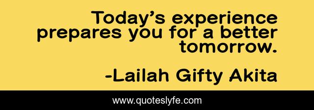 This page presents the quote "Today’s experience prepares you for a better tomorrow.". Author of this quote is Lailah Gifty Akita. This quote is about confidence, positive, motivational, experience, wisdom-of-lailah-gifty-akita, failure, optimistic,.