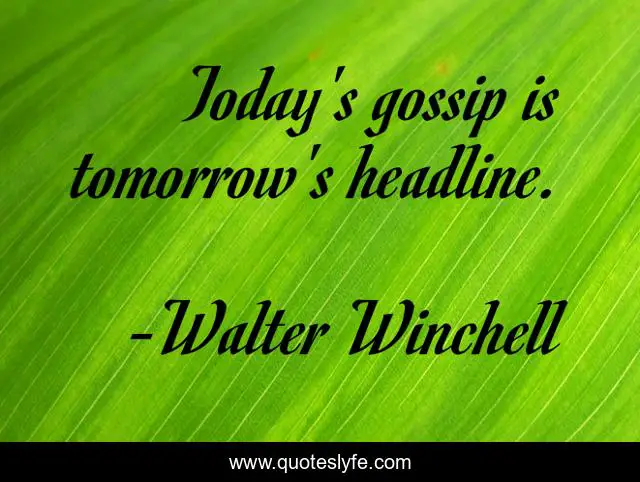 "Walter Winchell Quotes." Quoteslyfe.com, 2025. Tue. 09 Dec. 2025. <https://www.quoteslyfe.com/quote/Today-s-gossip-is-tomorrow-s-headline-288344>.