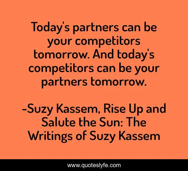 "Suzy Kassem, Rise Up and Salute the Sun: The Writings of Suzy Kassem Quotes." Quoteslyfe.com, 2025. Sat. 06 Dec. 2025. <https://www.quoteslyfe.com/quote/Today-s-partners-can-be-your-competitors-110276>.