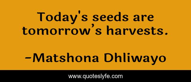 "Matshona Dhliwayo Quotes." Quoteslyfe.com, 2025. Sat. 06 Dec. 2025. <https://www.quoteslyfe.com/quote/Today-s-seeds-are-tomorrow-s-harvests-83093>.