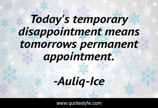 "Auliq-Ice Quotes." Quoteslyfe.com, 2025. Fri. 05 Dec. 2025. <https://www.quoteslyfe.com/quote/Today-s-temporary-disappointment-means-tomorrows-permanent-60223>.