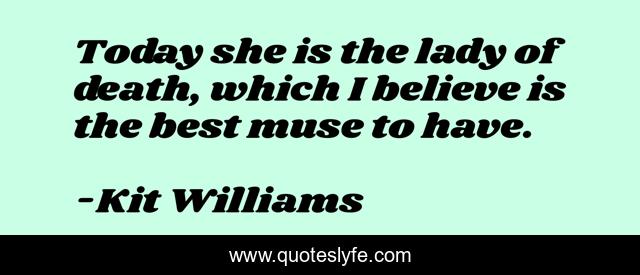 This page presents the quote "Today she is the lady of death, which I believe is the best muse to have.". Author of this quote is Kit Williams. This quote is about believe, best, today,.