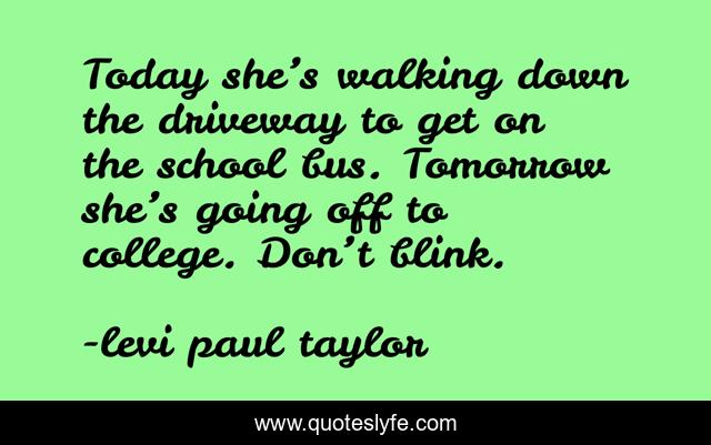 This page presents the quote "Today she’s walking down the driveway to get on the school bus. Tomorrow she’s going off to college. Don’t blink.". Author of this quote is levi paul taylor. .