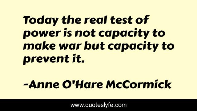 This page presents the quote "Today the real test of power is not capacity to make war but capacity to prevent it.". Author of this quote is Anne O'Hare McCormick. .