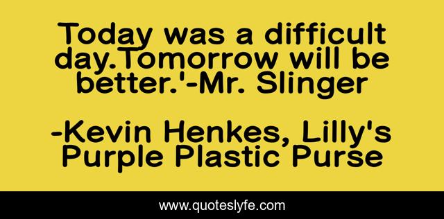This page presents the quote "Today was a difficult day.Tomorrow will be better.'-Mr. Slinger". Author of this quote is Kevin Henkes, Lilly's Purple Plastic Purse. .
