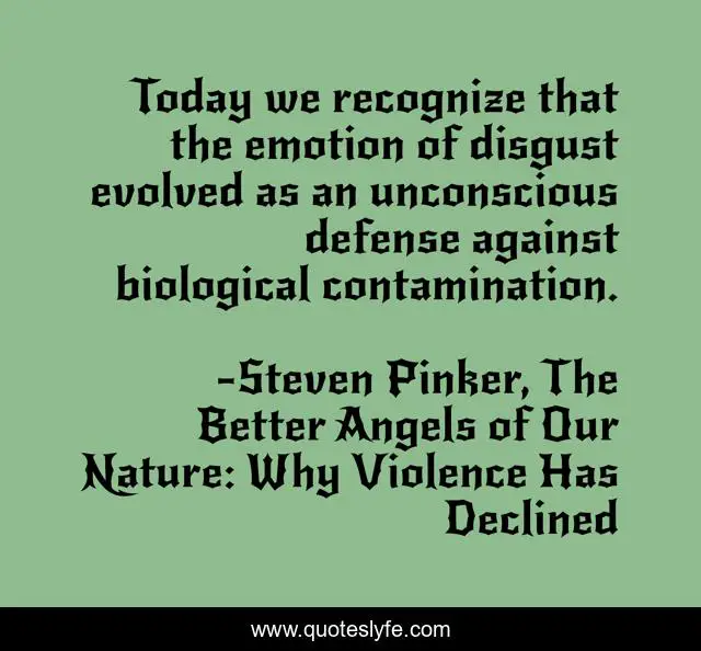 This page presents the quote "Today we recognize that the emotion of disgust evolved as an unconscious defense against biological contamination.". Author of this quote is Steven Pinker, The Better Angels of Our Nature: Why Violence Has Declined. This quote is about emotion, biological, evolution, defense, disgust,.