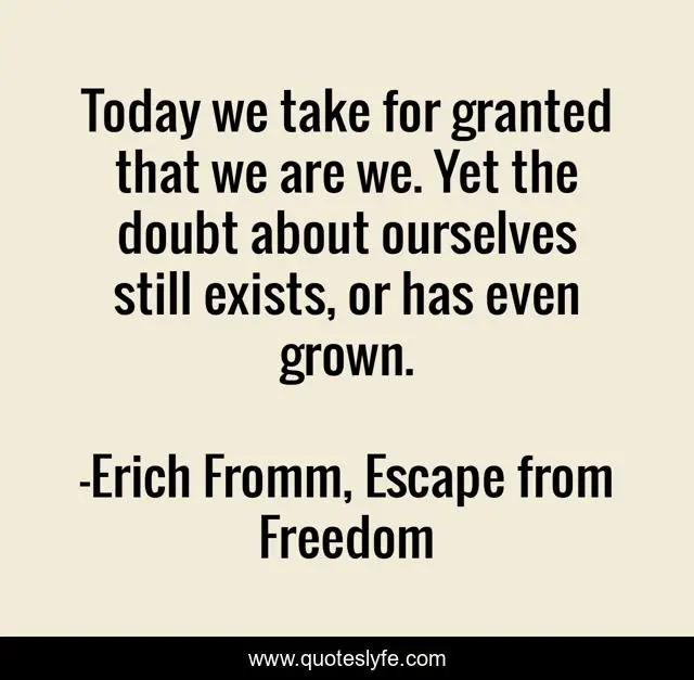 "Erich Fromm, Escape from Freedom Quotes." Quoteslyfe.com, 2025. Sun. 07 Dec. 2025. <https://www.quoteslyfe.com/quote/Today-we-take-for-granted-that-we-190635>.