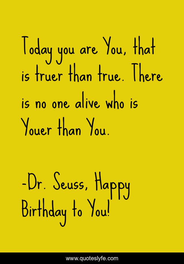 "Dr. Seuss, Happy Birthday to You! Quotes." Quoteslyfe.com, 2025. Fri. 05 Dec. 2025. <https://www.quoteslyfe.com/quote/Today-you-are-You-that-is-truer-1785>.