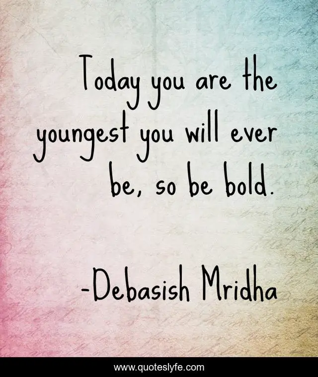 This page presents the quote "Today you are the youngest you will ever be, so be bold.". Author of this quote is Debasish Mridha. This quote is about debasish, mridha, be-bold, philosophy, debasish-mridha, youngest, today,.