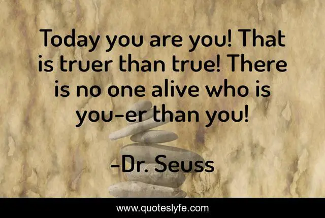 This page presents the quote "Today you are you! That is truer than true! There is no one alive who is you-er than you!". Author of this quote is Dr. Seuss. This quote is about true, today,.