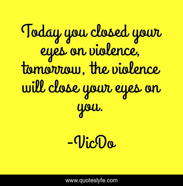 This page presents the quote "Today you closed your eyes on violence, tomorrow, the violence will close your eyes on you.". Author of this quote is VicDo. This quote is about eyes, violence,.