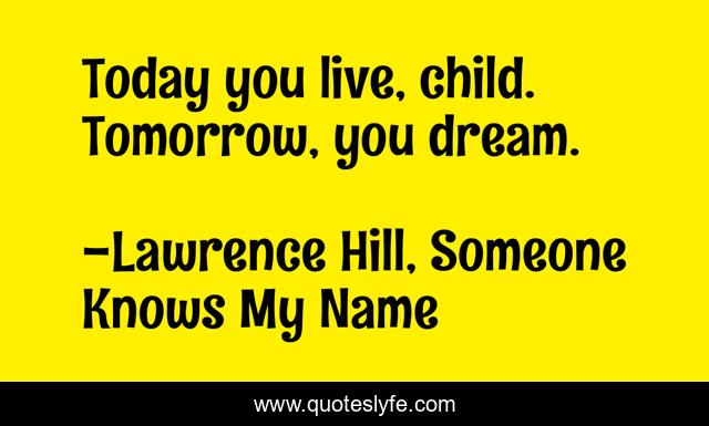 "Lawrence Hill, Someone Knows My Name Quotes." Quoteslyfe.com, 2025. Tue. 09 Dec. 2025. <https://www.quoteslyfe.com/quote/Today-you-live-child-Tomorrow-you-dream-53341>.