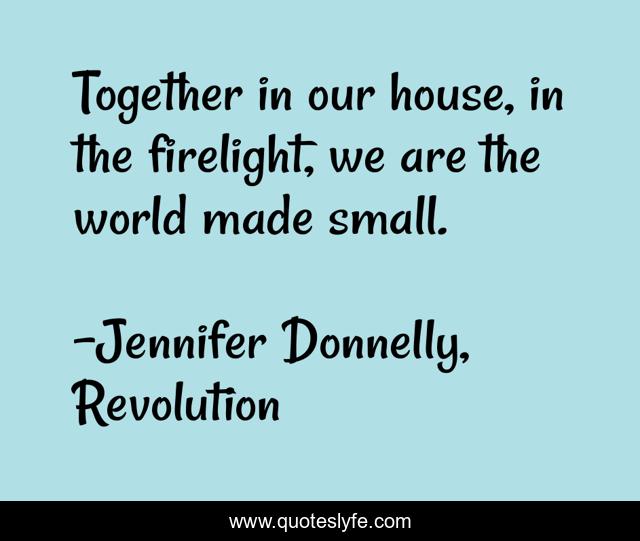 "Jennifer Donnelly, Revolution Quotes." Quoteslyfe.com, 2025. Sun. 07 Dec. 2025. <https://www.quoteslyfe.com/quote/Together-in-our-house-in-the-firelight-85757>.