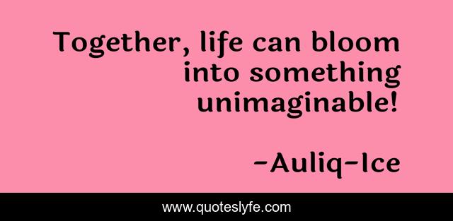 "Auliq-Ice Quotes." Quoteslyfe.com, 2025. Fri. 05 Dec. 2025. <https://www.quoteslyfe.com/quote/Together-life-can-bloom-into-something-unimaginable-20355>.