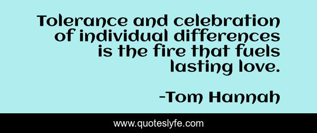 This page presents the quote "Tolerance and celebration of individual differences is the fire that fuels lasting love.". Author of this quote is Tom Hannah. .