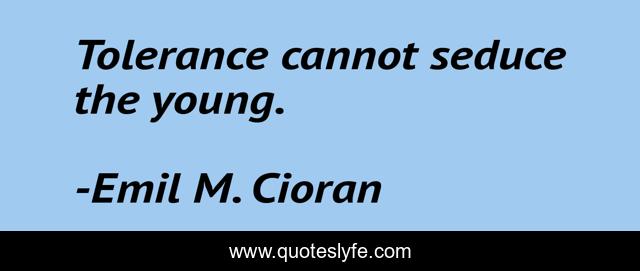 "Emil M. Cioran Quotes." Quoteslyfe.com, 2025. Mon. 08 Dec. 2025. <https://www.quoteslyfe.com/quote/Tolerance-cannot-seduce-the-young-184237>.