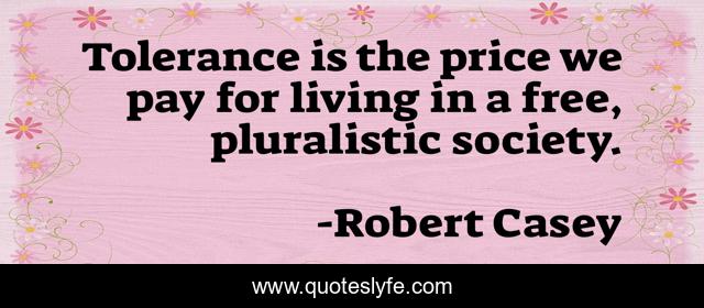 This page presents the quote "Tolerance is the price we pay for living in a free, pluralistic society.". Author of this quote is Robert Casey. This quote is about society, tolerance, pluralism,.
