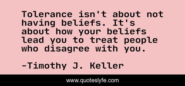 "Timothy J. Keller Quotes." Quoteslyfe.com, 2025. Fri. 05 Dec. 2025. <https://www.quoteslyfe.com/quote/Tolerance-isn-t-about-not-having-beliefs-184864>.