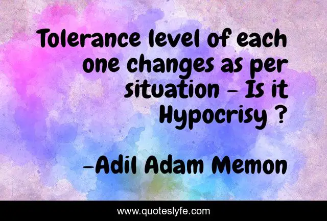 This page presents the quote "Tolerance level of each one changes as per situation - Is it Hypocrisy ?". Author of this quote is Adil Adam Memon. .