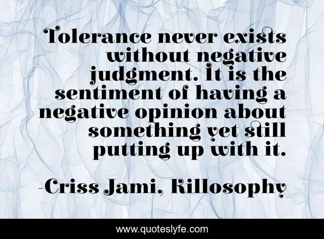 "Criss Jami, Killosophy Quotes." Quoteslyfe.com, 2025. Fri. 05 Dec. 2025. <https://www.quoteslyfe.com/quote/Tolerance-never-exists-without-negative-judgment-It-157689>.