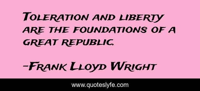 This page presents the quote "Toleration and liberty are the foundations of a great republic.". Author of this quote is Frank Lloyd Wright. This quote is about republic, liberty,.