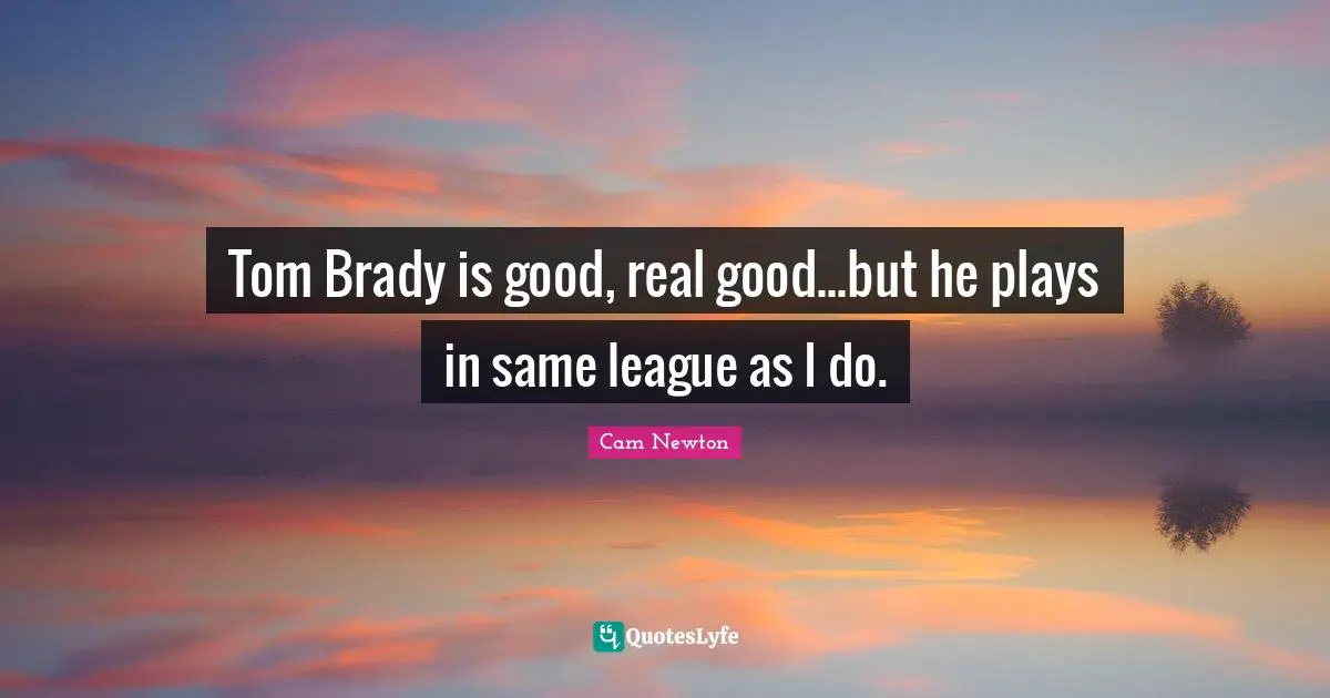 This page presents the quote "Tom Brady is good, real good...but he plays in same league as I do.". Author of this quote is Cam Newton. This quote is about league, real, play, brady,.