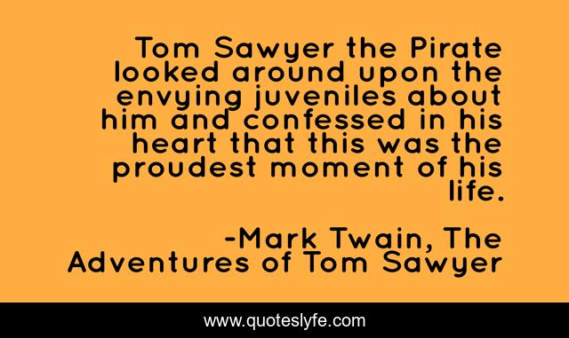 This page presents the quote "Tom Sawyer the Pirate looked around upon the envying juveniles about him and confessed in his heart that this was the proudest moment of his life.". Author of this quote is Mark Twain, The Adventures of Tom Sawyer. This quote is about twain, pride, tom-sawyer,.