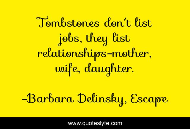 This page presents the quote "Tombstones don´t list jobs, they list relationships-mother, wife, daughter.". Author of this quote is Barbara Delinsky, Escape. .