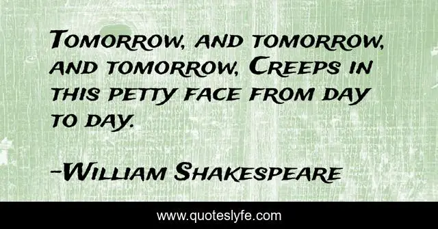 "William Shakespeare Quotes." Quoteslyfe.com, 2025. Sat. 06 Dec. 2025. <https://www.quoteslyfe.com/quote/Tomorrow-and-tomorrow-and-tomorrow-Creeps-in-38749>.