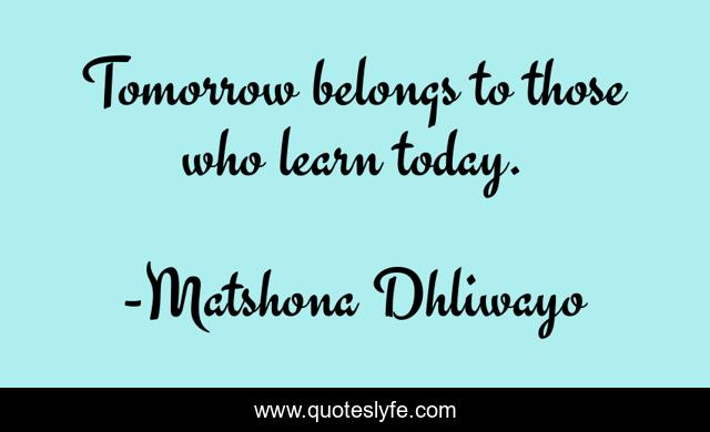 "Matshona Dhliwayo Quotes." Quoteslyfe.com, 2025. Fri. 05 Dec. 2025. <https://www.quoteslyfe.com/quote/Tomorrow-belongs-to-those-who-learn-today-225337>.