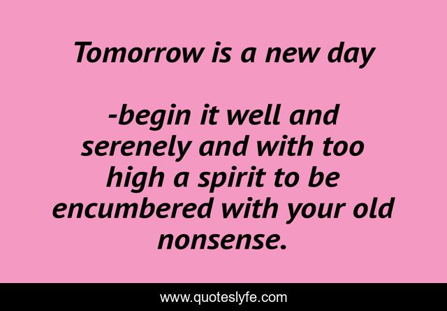 This page presents the quote "Tomorrow is a new day". Author of this quote is begin it well and serenely and with too high a spirit to be encumbered with your old nonsense.. .