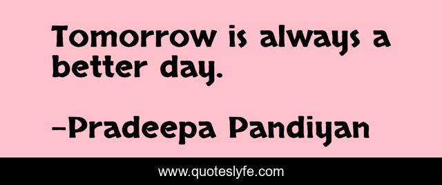 "Pradeepa Pandiyan Quotes." Quoteslyfe.com, 2025. Sun. 14 Dec. 2025. <https://www.quoteslyfe.com/quote/Tomorrow-is-always-a-better-day-115965>.