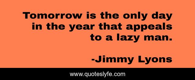 This page presents the quote "Tomorrow is the only day in the year that appeals to a lazy man.". Author of this quote is Jimmy Lyons. .