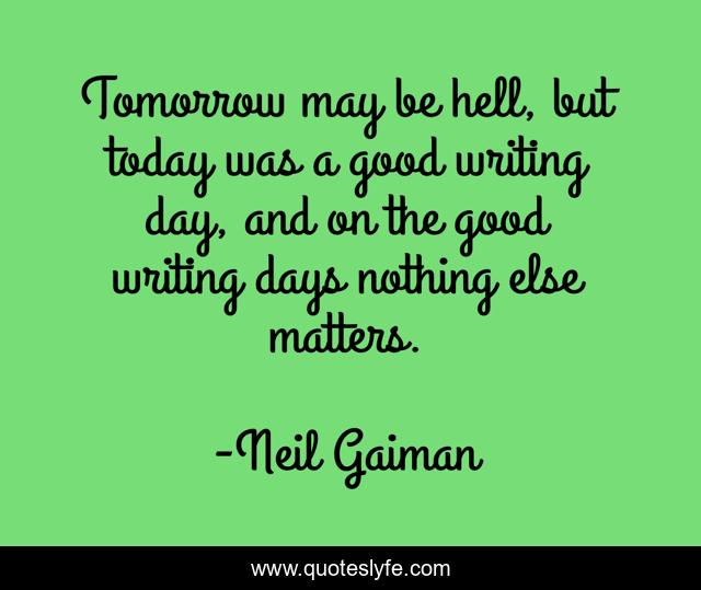 This page presents the quote "Tomorrow may be hell, but today was a good writing day, and on the good writing days nothing else matters.". Author of this quote is Neil Gaiman. .