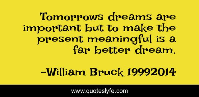 This page presents the quote "Tomorrows dreams are important but to make the present meaningful is a far better dream.". Author of this quote is William Bruck 19992014. .