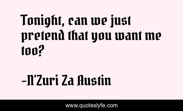 This page presents the quote "Tonight, can we just pretend that you want me too?". Author of this quote is N'Zuri Za Austin. This quote is about desire, love, pretend, tonight, fantasy, need, dream, affection,.
