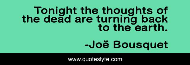 This page presents the quote "Tonight the thoughts of the dead are turning back to the earth.". Author of this quote is Joë Bousquet. .
