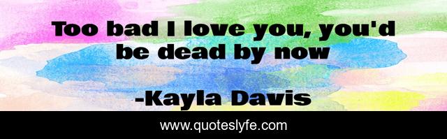 This page presents the quote "Too bad I love you, you'd be dead by now". Author of this quote is Kayla Davis. This quote is about love, friend, affection,.