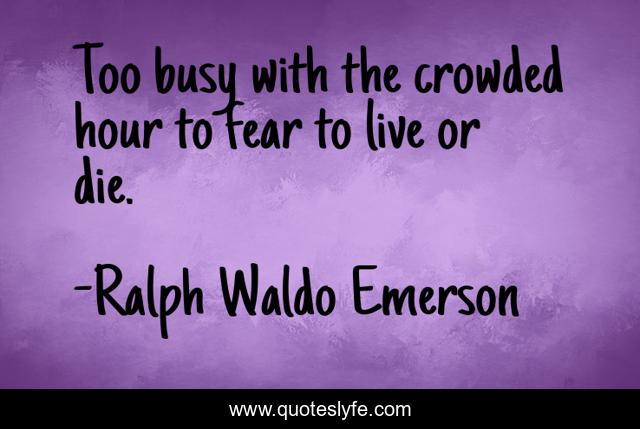 This page presents the quote "Too busy with the crowded hour to fear to live or die.". Author of this quote is Ralph Waldo Emerson. This quote is about success, happiness,.