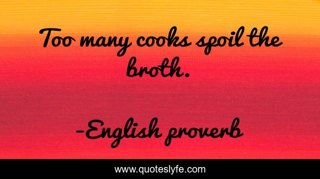 This page presents the quote "Too many cooks spoil the broth.". Author of this quote is English proverb. .